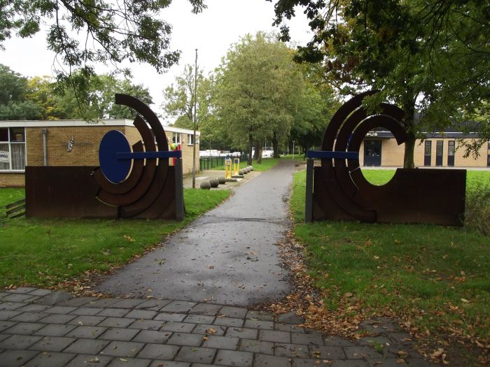 De poort is bij de ingang van het skatepark en speeltuin geplaatst. Het stelt een arena van bovenaf gezien voor. Het is een knipoog naar de vele sportaccommodaties rondom de het skatepark. Als het hek dicht is kunnen auto’s en brommers er niet meer door, alleen kinderen en skaters.
